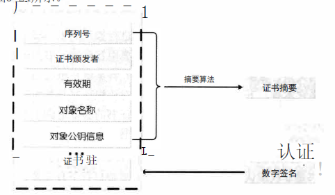 • 对象的名称(人、服务器、组织); • 证书的过期时间; • 证书的颁发机构(谁为证书担保); • 证书颁发机构对证书信息的数字签名: • 签名算法: • 对象的公钥。