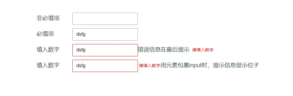 <input class="input" type="text" value="dsfg" v-vd="{rule:['required', 'number'],bind:'submitOk'}">错误信息在最后提示