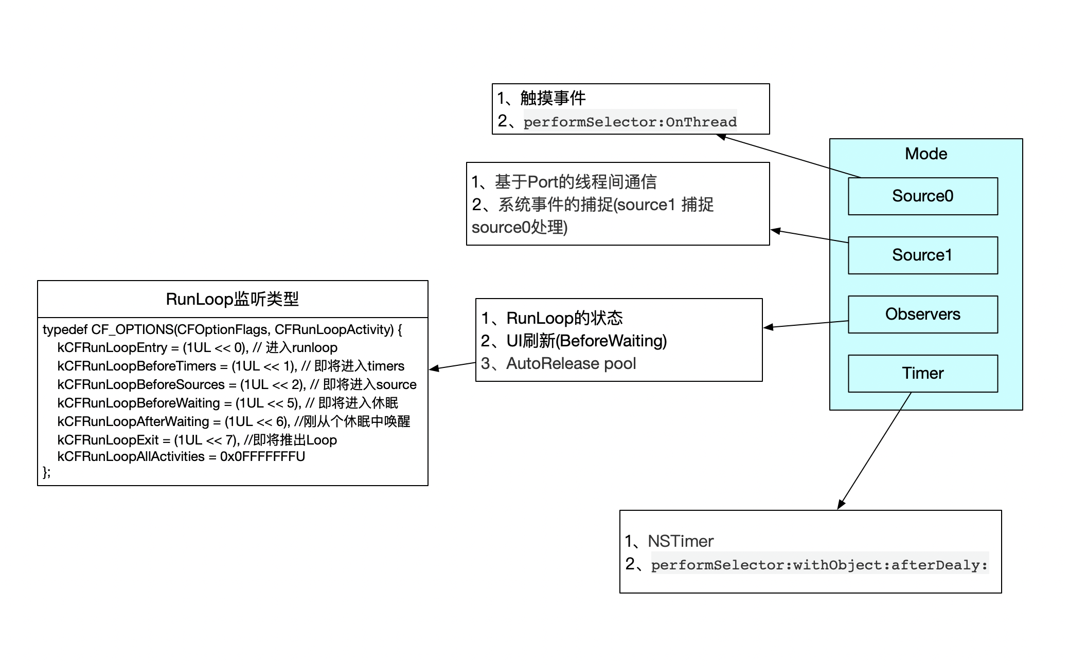 - UITrackingRunLoopMode 用于界面跟踪Mode用于scrollview追踪触摸滑动,保证界面滑动不受其他的mode影响