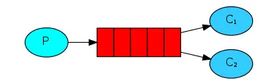 传递一个消息到多个消费者中,借助该模式可以发布的消息将被广播给所有接收者。
