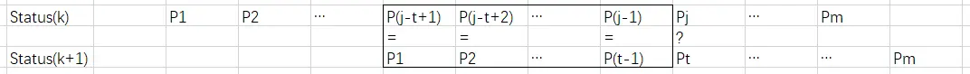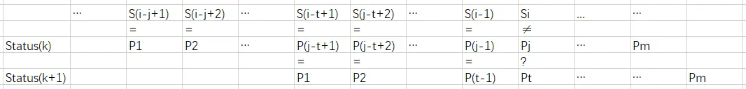 我们假设上面这个状态为 Status(k) ,而在P1P2...Pm向后移动过程中某处到达Status(k+1)