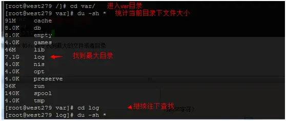 - 继续执行cd和du 命令找到最大的文件或者目录