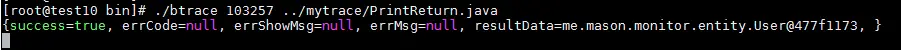 btrace-bin-1.3.11.3\samples目录 BTrace脚本中追踪的输入参数,返回值类型是简单类型直接使用(如int ,float等),复杂类型可以使用AnyType,但如果是使用自定义包中的类型(如User),则需要运行脚本时添加cp或classpath参数,指定自定义包。- 一般简单类型或字符串,直接使用