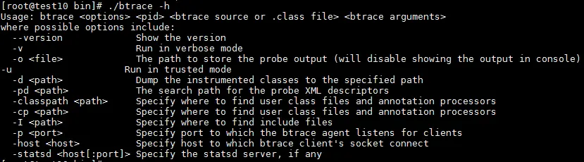 btrace的命令在bin目录 下- 若需要在任意目录可执行,需要把