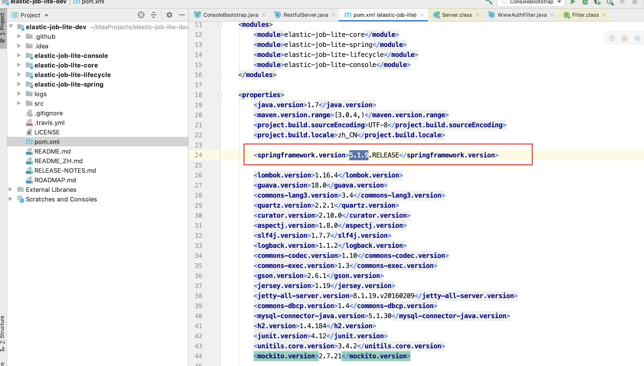 下载工程,导入Idea启动elastic-job-lite-console工程,启动之前修改父pom文件中的spring框架版本为5.1.9.RELEASE,然后启动,浏览器输入localhost:8899即可进入控制台。