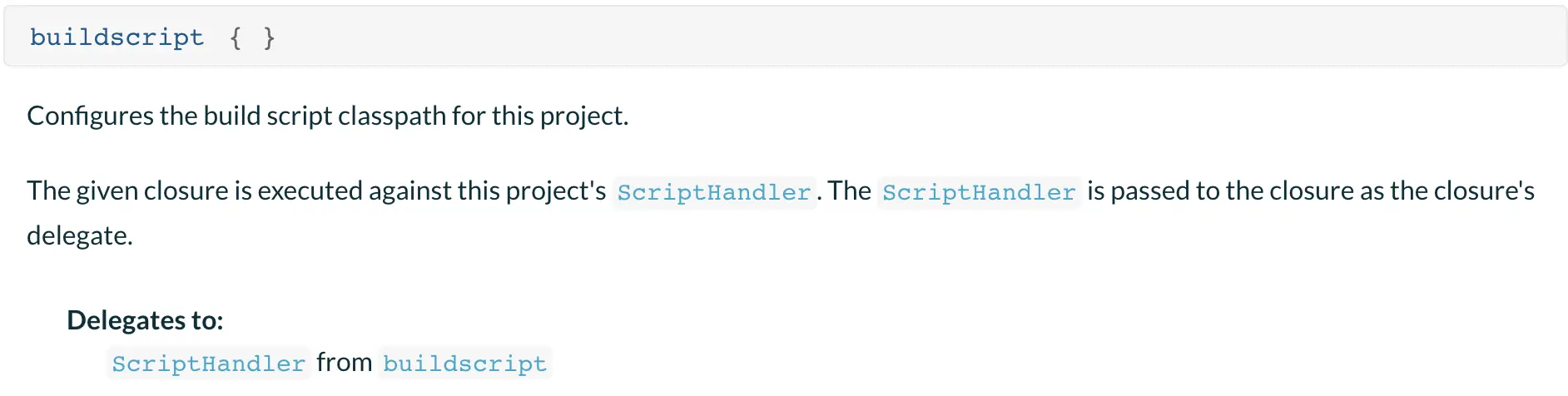 上面官网的图里,说ScriptHandler被设置成buildscript的delegate。意思就是buildscript定义的参数被ScriptHandler拿来使用了。大家有兴趣的可以去看看ScriptHandler的源码~