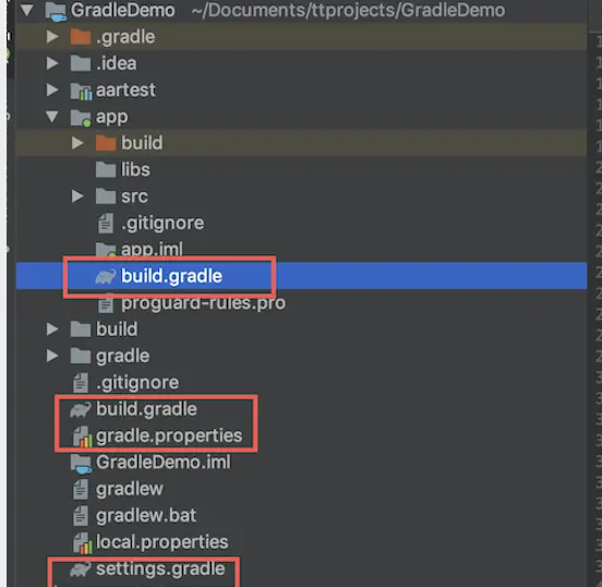 咱们先看看日常工作中经常用到的几个gradle文件。可以看到主要有有三个文件: 1.build.gradle 根文件下放的通常放的是针对整个工程的通用配置,每个module下面的build.gradle文件是针对每个module自身的配置。