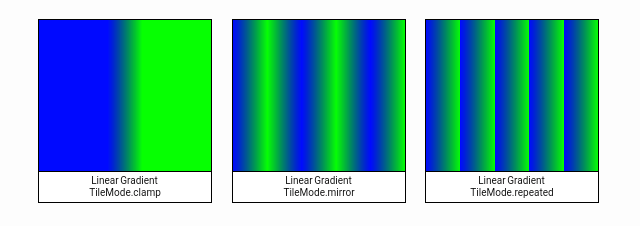 center - 渐变中心 radius - 渐变半径,浮点数 colors - 渐变颜色,是数组 stops - 渐变分割 tileMode - 平铺模式