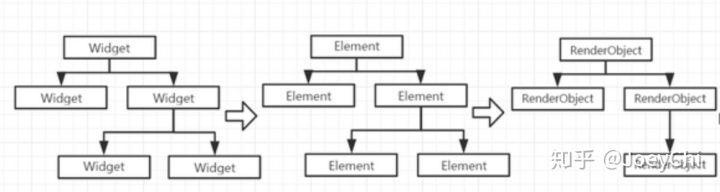 - Widget 树 - 就是我们的UI组件树,但这个只是一种描述信息,渲染引擎是不认识的