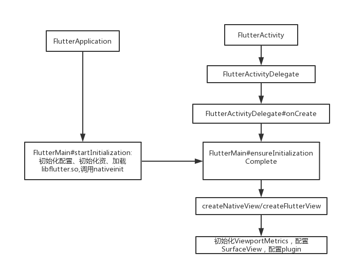 核心就是创建出 FlutterView 这个 view 对象,然后把 FlutterView setContentView 给 activity,这样就完成了从 Flitter 到 android 平台的显示,MainActivity 这个AC 可是只有 FlutterView 这一个 view 啊,Flutter 所有的 UI 组件都是由 FlutterView 使用 canvas 直接绘制的。Flutter 就是这样和 android 联系的,脱离了 android 传统的 xml 布局方式,节省了 xml dom 解析反射生成 viewTree 的操作