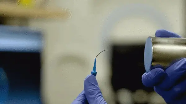 首先,团队想到了磁力控制。团队在柔软有弹性的、镍钛合金的油墨 (Ink) 里,加入了钕铁磁: