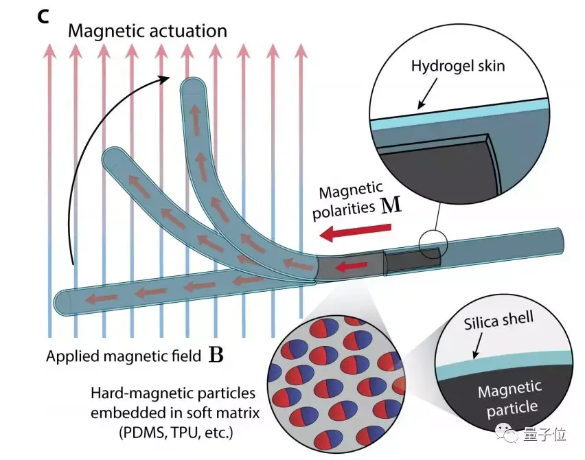 为了防止嵌入的钕铁硼颗粒在与水凝胶皮肤的水合界面处被腐蚀,研究团队在颗粒周围涂上了一层薄二氧化硅。
