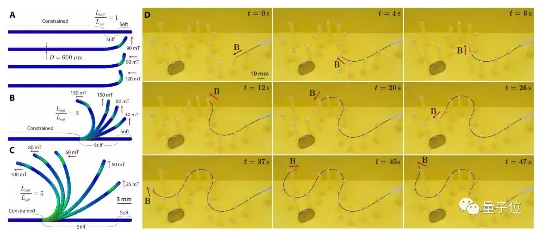 用这两种材质造出的机器人,感受到不同的磁场,就能实现不同程度的转弯: