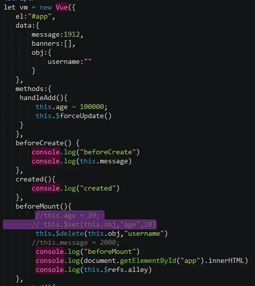created:创建后 1、当前生命周期可以访问data中的属性以及methods中的方法的 2、在当前生命周期的函数中会遍历data和methods中所有的方法和属性,将这些方法和属性代理到vm的实例身上 3、当前生命周期函数会遍历data身上所有的属性,给data中所有的属性添加一个getter/setter=>(get/set)方法,也就是我们通常所说的数据劫持,如果数据拥有了getter/setter方法那么数据发生改变的时候也会触发视图重新渲染。 补充:简单的说我们所说的数据劫持就是你的数据能否在视图上所展示,通常展示的都是被劫持的的数据,当数据没有被劫持的时候我们可以通过强制性刷新的办法进行强制性的劫持 4、一般情况下我们会在当前生命周期函数进行前后端数据的交互