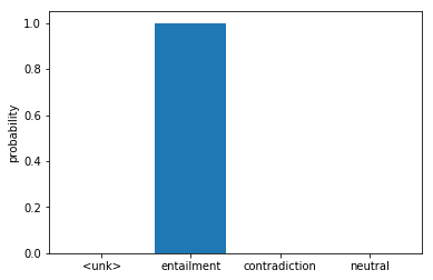 输入两个句子之后,打印最可能的推测结果,并用直方图显示每种推测的概率