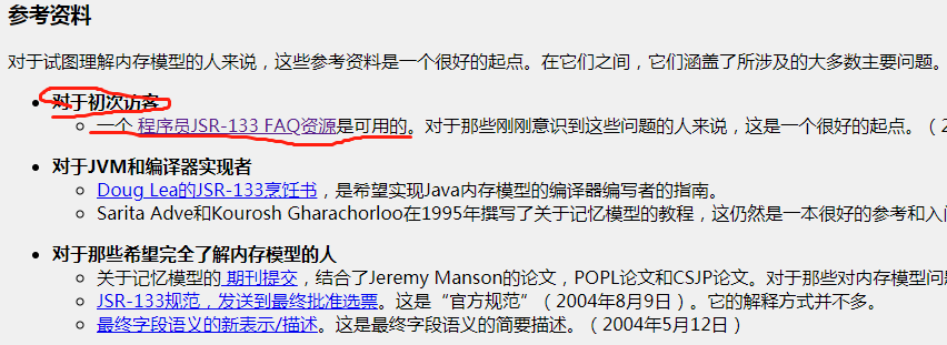 jdk1.5 出了一份新的java内存模型和线程规范 jsr-133, 制定规范的各路大神们把他们的商议的过程,结果完整的保留在了下面这个网站里 www.cs.umd.edu/~pugh/java/…