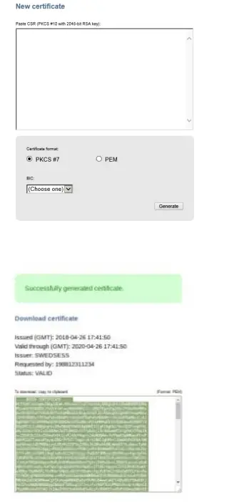 这个步骤是由后台的同学来做的,需要进入这个网页配置Swish的证书,comcert.getswish.net/cert-mgmt-w… 在配置过程中需要的CSR文件是在服务器上生成的,然后复制文件的内容到输入框里,如下图所示