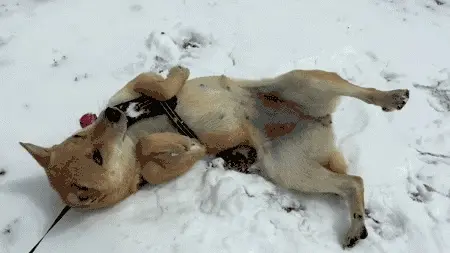 在雪地里蹭呀蹭的双喜就像一只瘫在地上蠕动的虫