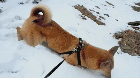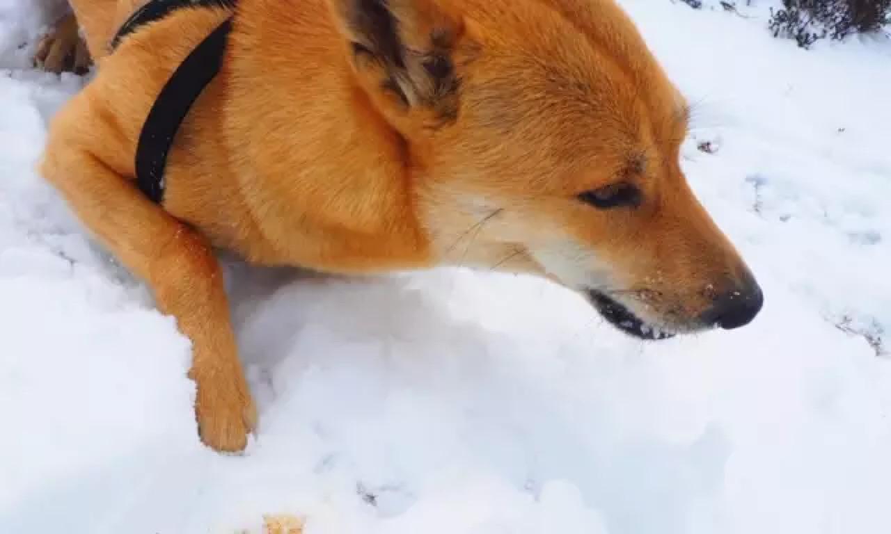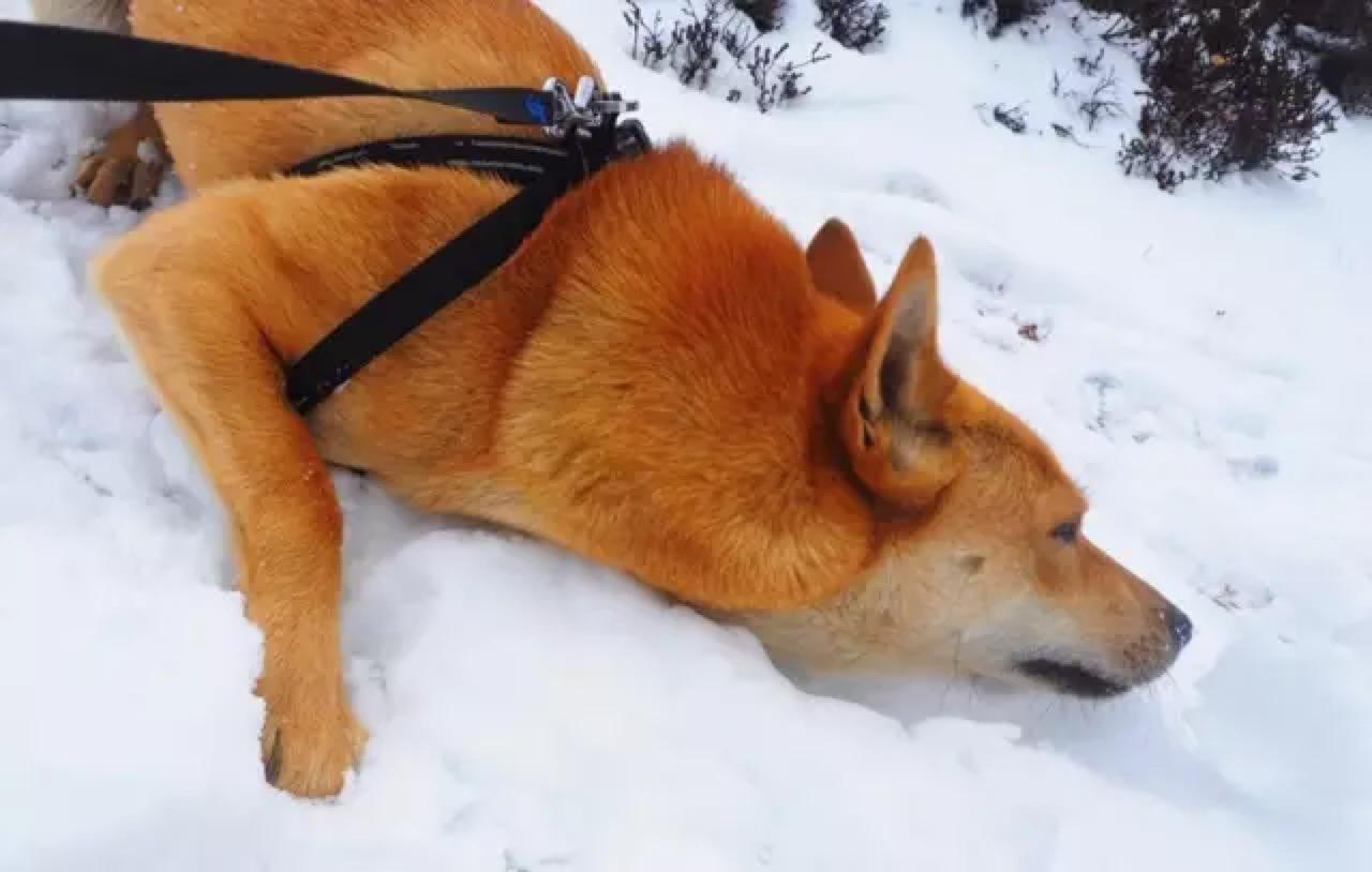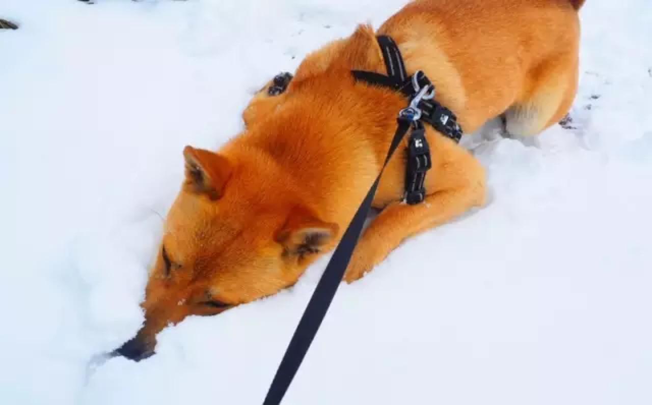 然后将整个嘴埋进雪里,耐何雪还是不够厚,不然它肯定刨个坑把自己埋了。