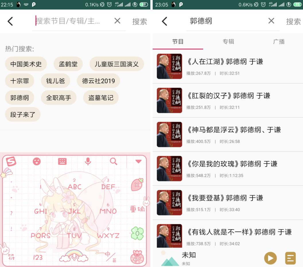 - 搜索节目/专辑/广播(包括热搜词)