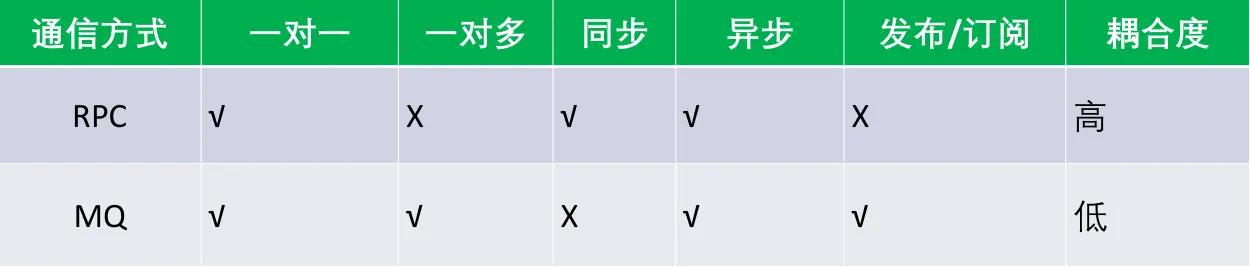 RPC就像打电话,需要一个迅速的回应(接通或者不接通),而MQ就像发微信QQ的消息,发过去了,不急着等回