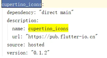 上文中说到 Flutter 的远程依赖都写在 pubspec.yaml 文件 里,具体的库依赖写法:cupertino_icons: ^0.1.2,加在一起简单的就是下面这个样子: