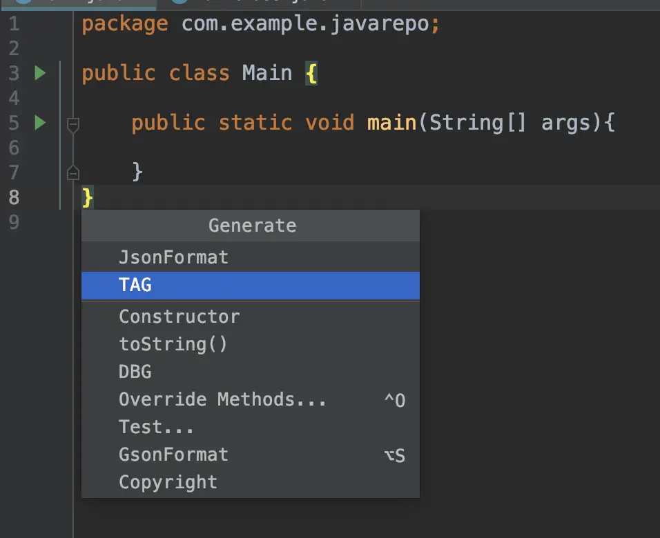 - 当然如果你已经写了一个TAG字段在顶层类里, 插件会执行替换而不是插入TAG.