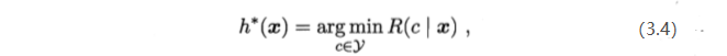 而我们的任务是需要找到一个方法,让公式(3.2)最小。这个方法能够将特征映射到类别上,这个方法的对应的总风险为