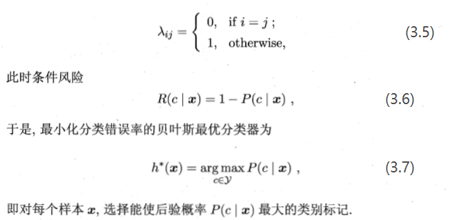 也最小,因此,在每个样本特征上选择使其条件风险最小的类别标记,便能够达到最优。