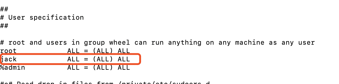 > 找到root下面添加 xxx ALL = (ALL) ALL这行 > xxx是你的用户名