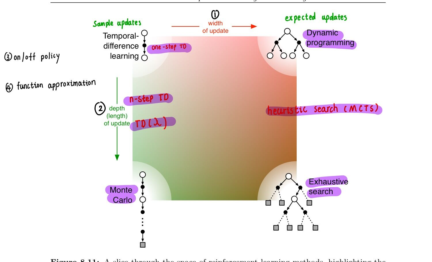 《强化学习》part 1 总结 赤西沽 2019-09-01 102 阅读1分钟 我们将 reinforcement learning 方法划分为四个维度:宽度 simple update / expected update深度 one-step look ahead / full step look aheadon policy / off policyfunction approximation (将在part 2 详细介绍)