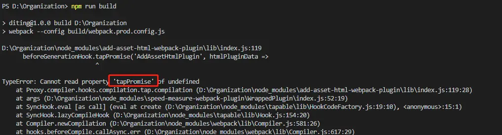 speed-measure-webpack-plugin进行耗时分析,从而导致打包出错,报错如下。