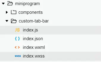 在小程序根目录创建custom-tab-bar文件夹,里面放的是你需要自定义的tabbar组件,我的文件目录跟内容是这样子的