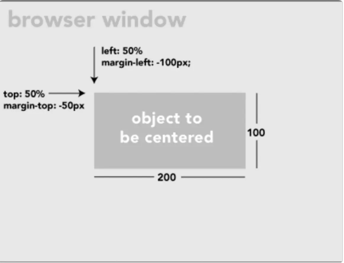 - 利用负外边距将元素向上向左移动,移动的距离是自身宽高的一半