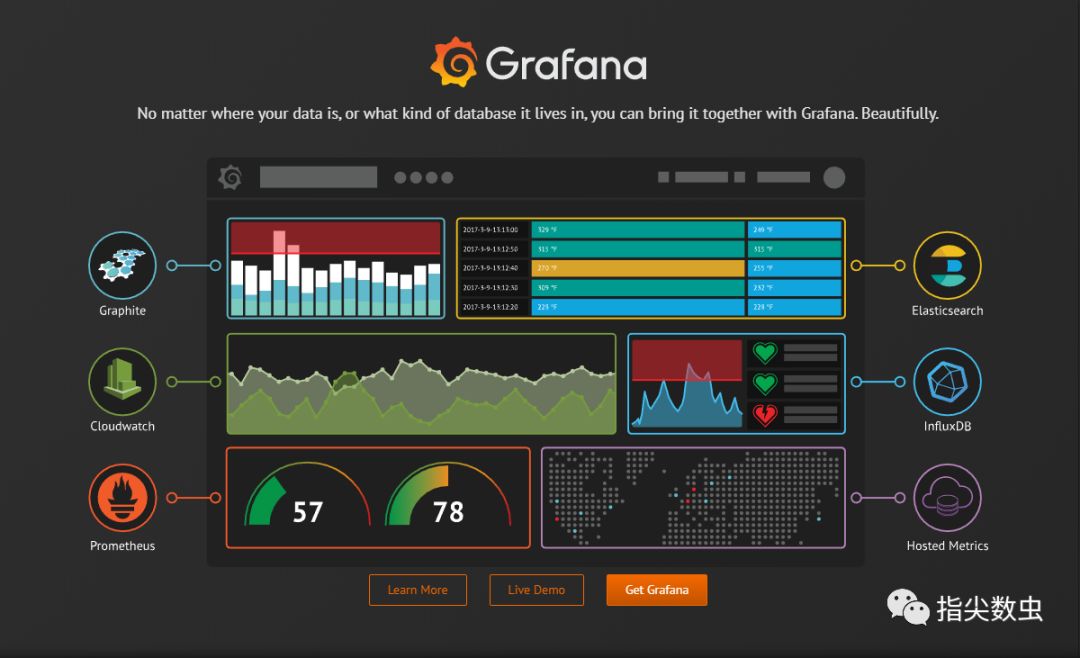 Grafana的Dashboard能够同时连接多种数据源,也就是说在Grafana的同一个Dashboard中能够实现同时展现MySQL的数据与ElasticSearch的数据。 那么我们就能够自由的融合多种数据源来展现数据。