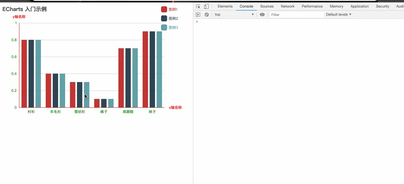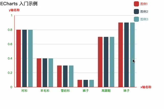 data: ["衬衫","羊毛衫","雪纺衫","裤子","高跟鞋","袜子"]