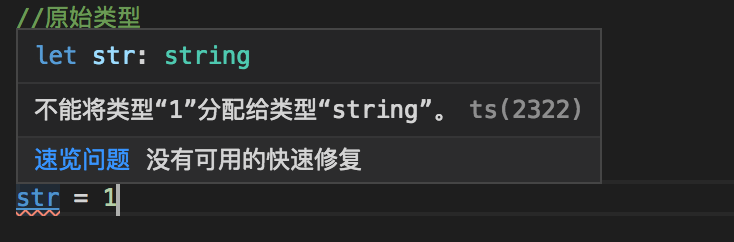 如果将str变量改成number类型,就会提示报错,ts不允许改变变量的数据类型