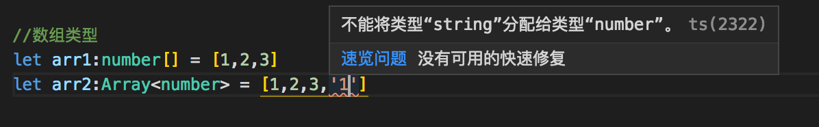 - ts只允许数组中包括一种数据类型的值,在数组arr1中添加字符串类型的值就会报错