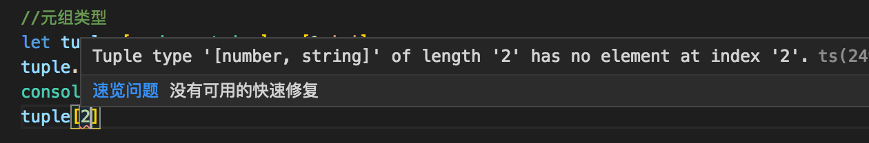 let tuple2:[number,string] = ['a','a'] //错误,不能将字符串a赋值给nuumber