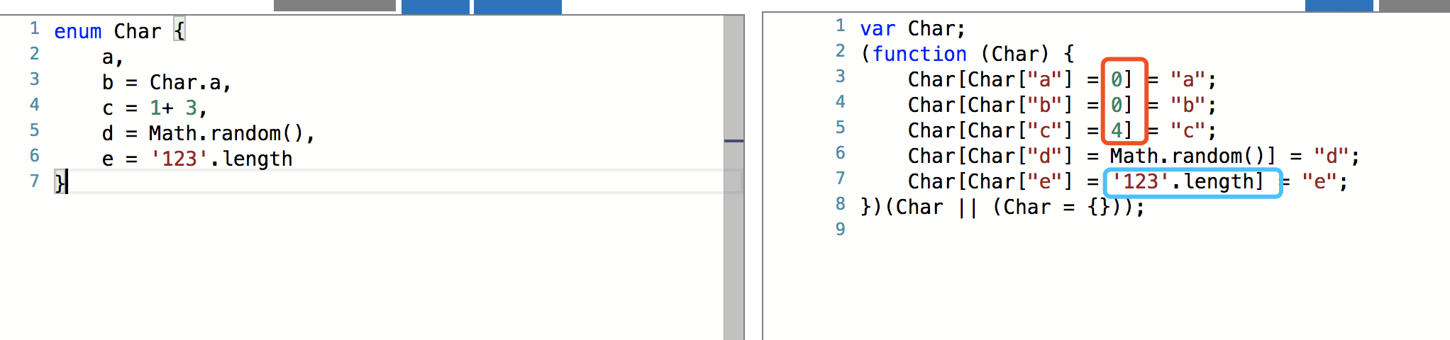 - 就是字符串枚举和数字枚举混用,不推荐使用