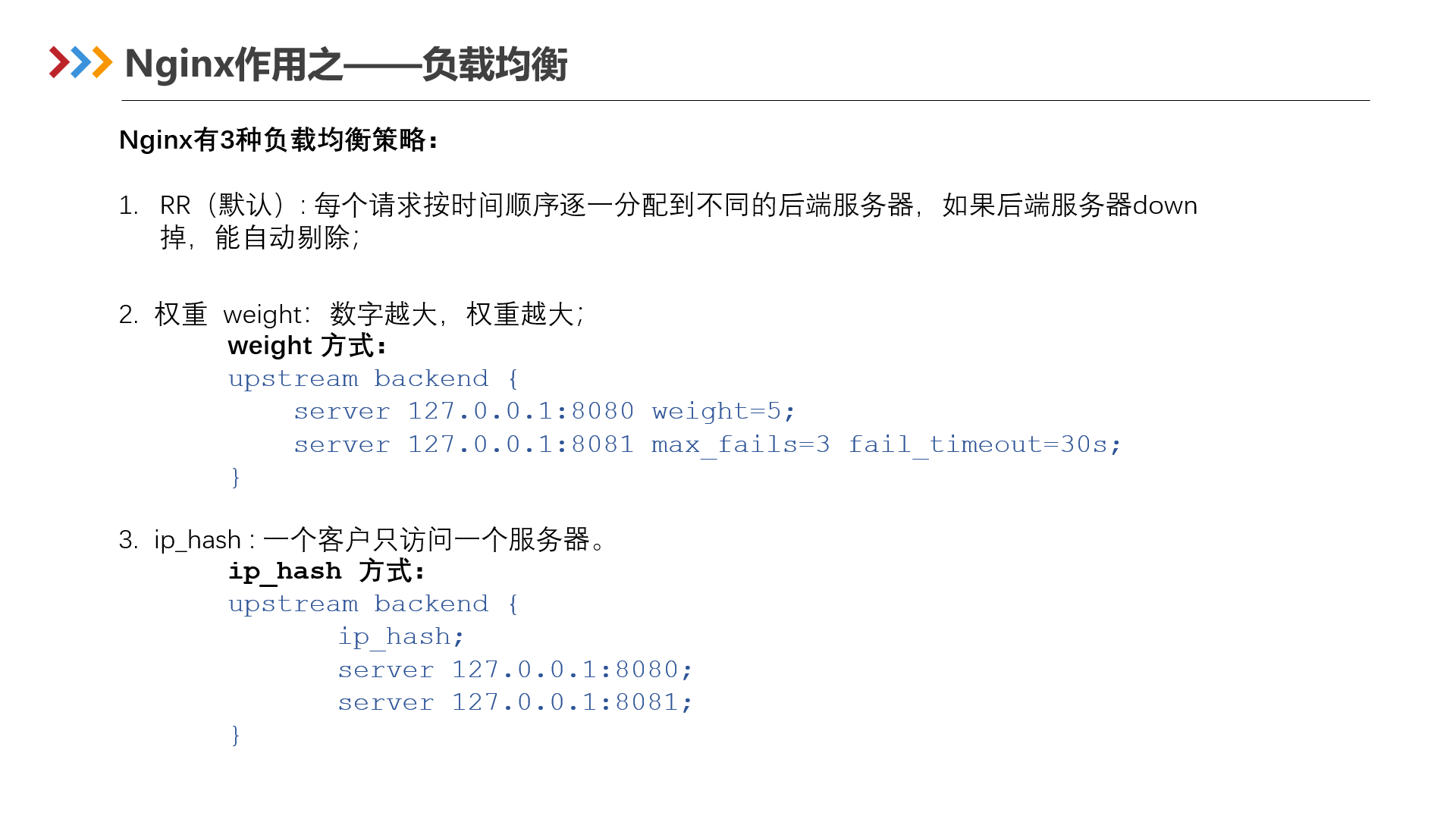 Nginx提供了3种负载均衡策略: