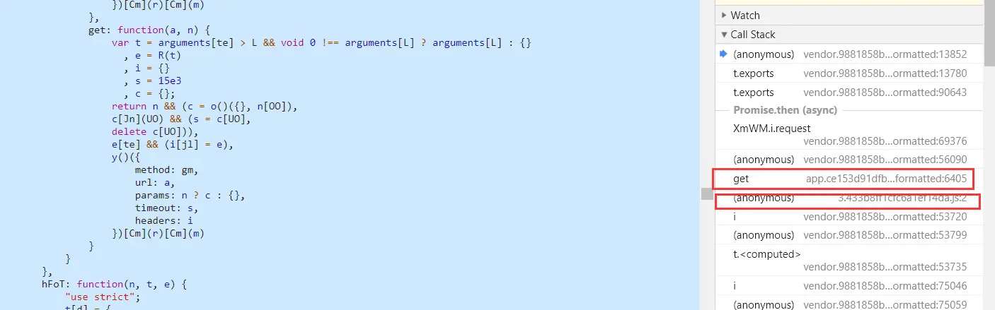 4.这个网站的js里面的函数对于我一个后端来说讲道理,有些难读懂,我是从参考了网上一些大神的资料,然后从最初的一个调用栈一个个网上查看传递的参数是什么,来查看到底是哪一步进行的加密.