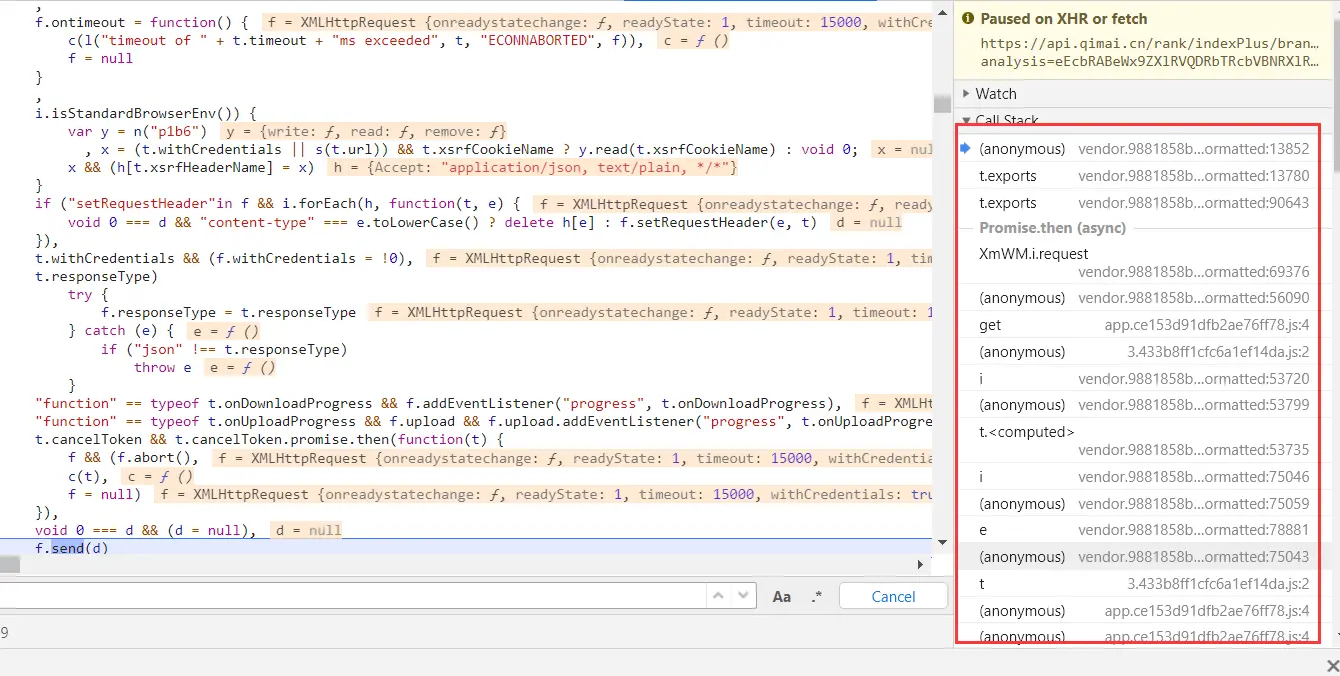 3.这时候我们可以在Network右边的侧边栏加入XHR breakPoint,