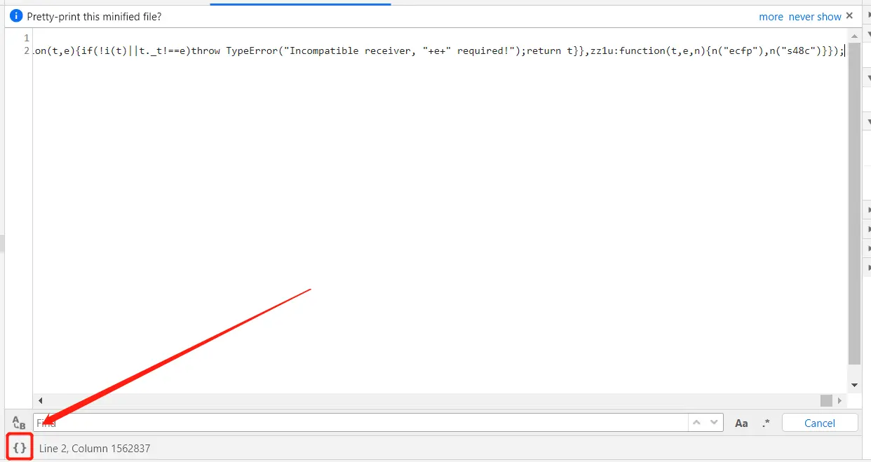 加密的部分其实就是这个analysis,这个网站有get和post的请求,但是都会在参数里面加一个analysis参数,用来区分是 内部调用还是其他人的请求.所以咱们只要破解了这个参数的生成规则,就可以拿到这个网站的数据了. 2.因此我们找找看能不能从网站的js文件或者哪里找出这个拼接参数加密的规则,就从第一个的请求参数开始,我们处于开发者模式下,点击Network,然后选择第一个接口,点击Initiator. 会跳转到对应的js中.这时候发现js是压缩的,点击chrome开发者工具自带的格式化代码