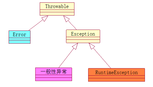 异常主要分为:Error、一般性异常(编译时异常)、RuntimeException