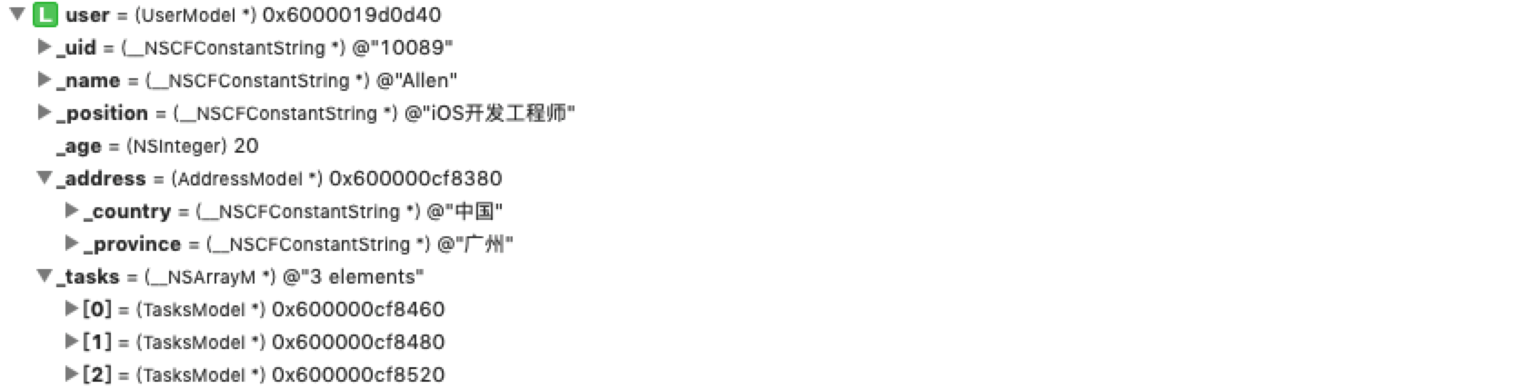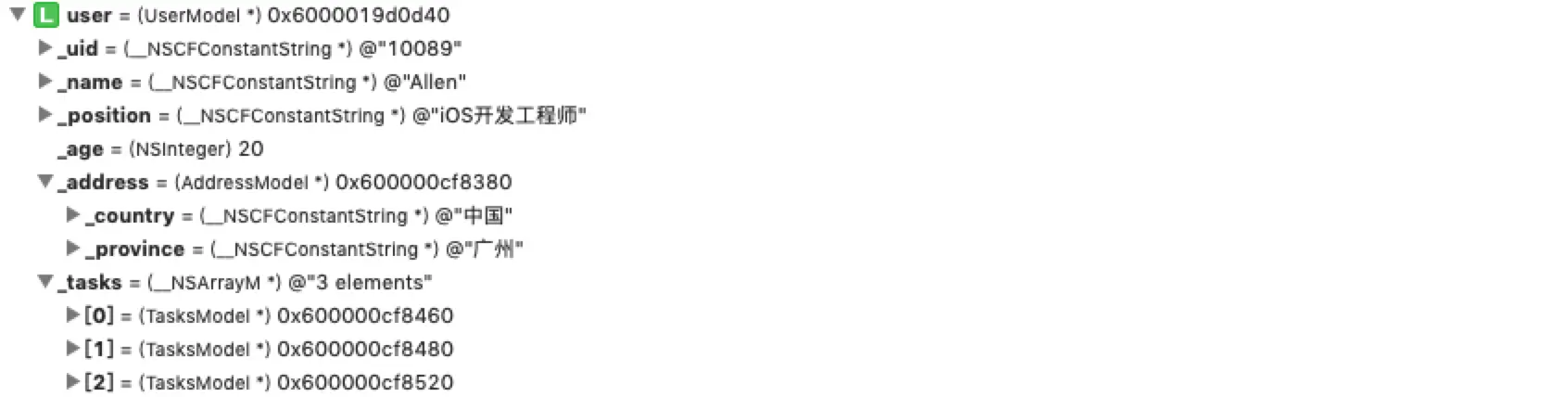 @property (nonatomic, strong) AddressModel *address;