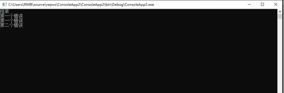对上述事例修改,采用并行调用两个方法,在2s秒后第一个抛出异常,1s秒后第二个异常也抛出了,使用Task.WhenAll,不管是否抛出异常,都会等两个任务完成。因此就算捕获了第一个异常也会执行第二个方法。但是我们只能看见抛出的第一个异常,没有显示第二个异常,但是它存在在列表中。