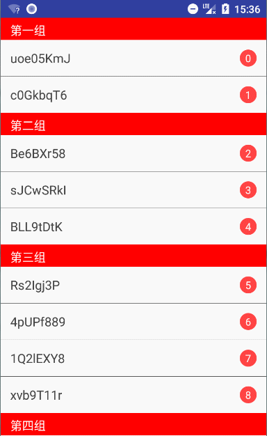 可以看到我们的Recyclerview每个item上面就隔开了一条分割线,只是颜色是系统默认的,我们来自己指定颜色,就需要用到第二个方法onDraw(),通过canvas在隔开的距离上填充图形,我们先简单画一个红色矩形: