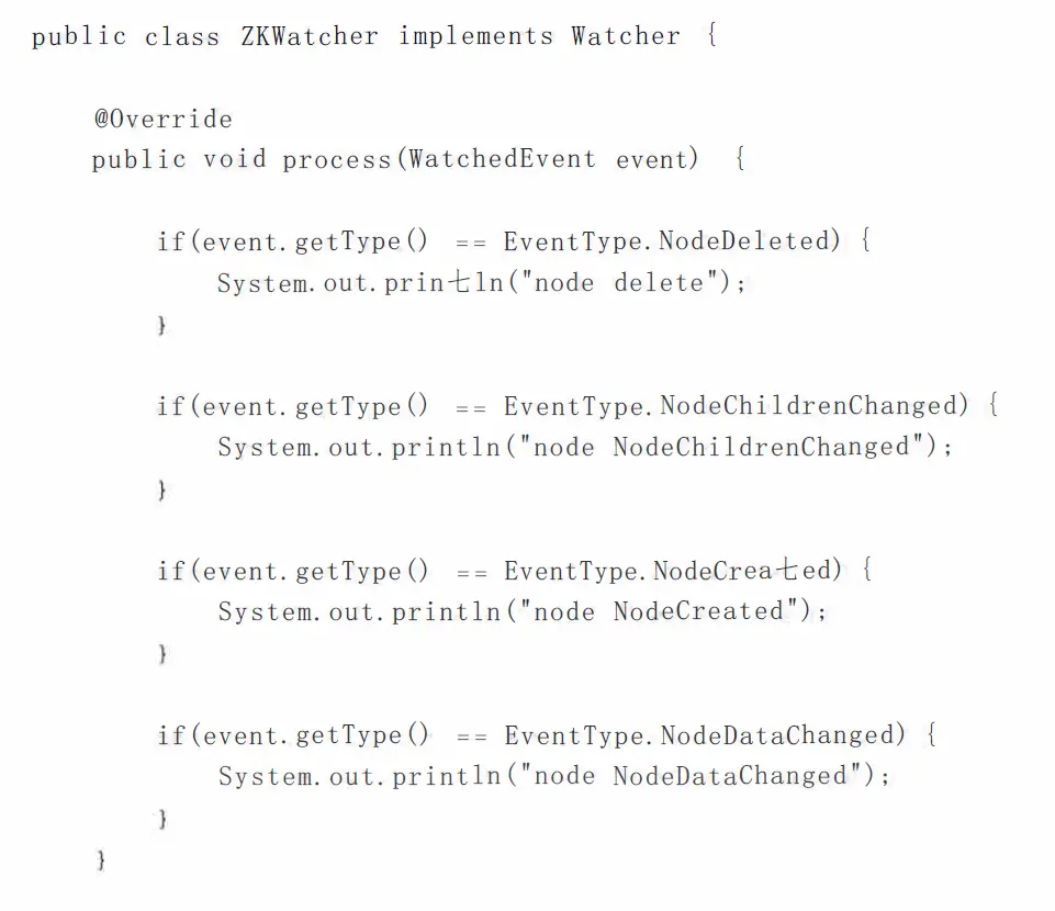 zkClient将ZooKeeper的watcher机制转换为一种更加容易理解的订阅形式,并且这种关系是可以保持的,而非一次性的。也就是说,当watcher使用完后,zkClient会自动再增加一个相同的watcher。节点有三种状态可供订阅,一类是子节点的变化,一类是数据的变化,还有一类是状态的变化。