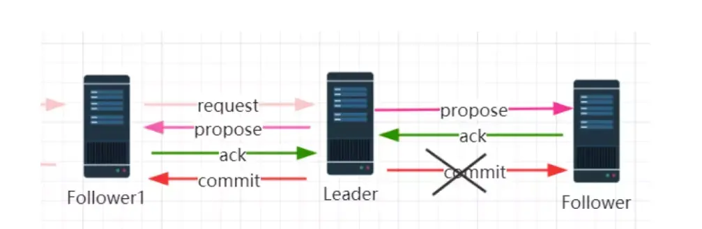 当 leader 收到合法数量 follower 的 ACKs 后,就向各个 follower 广播 COMMIT 命令,同时也会在本地执行 COMMIT 并向连接的客户端返回「成功」。但是如果在各个 follower 在收到 COMMIT 命令前 leader就挂了,导致剩下的服务器并没有执行都这条消息。